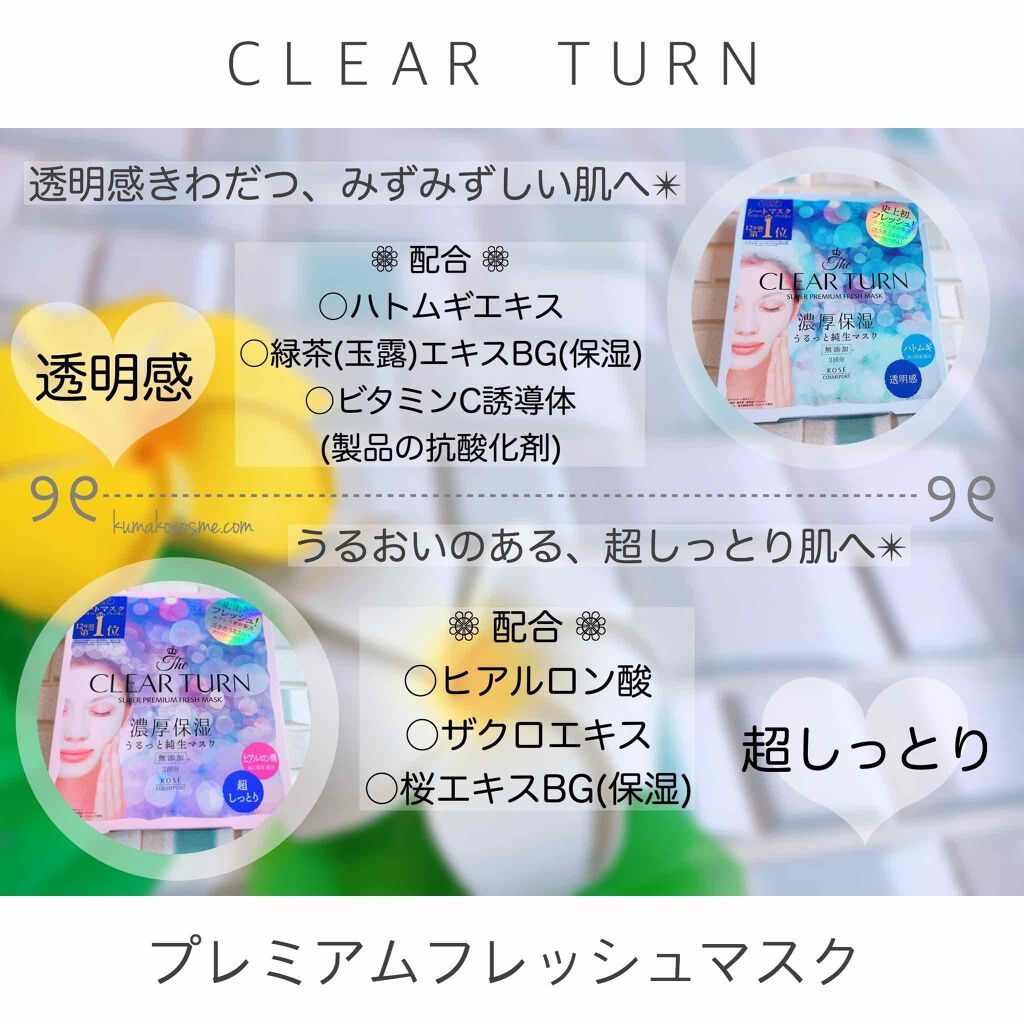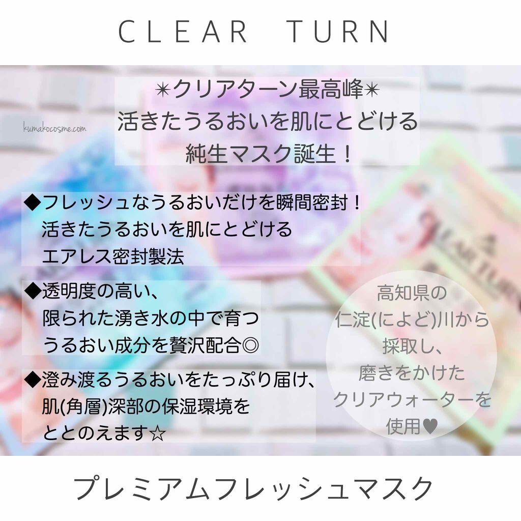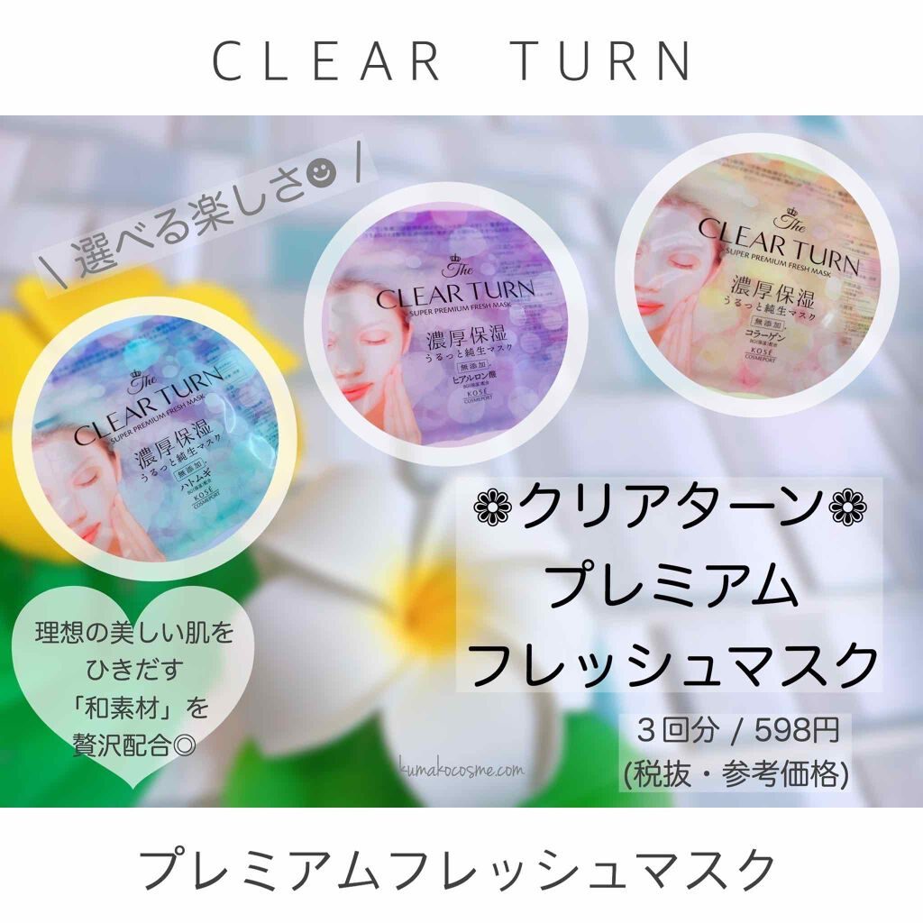 クリアターンのシートマスク・パックを徹底比較☆プレミアム フレッシュマスク(透明感・超しっとり・ハリツヤ)、3商品を比べてみました!